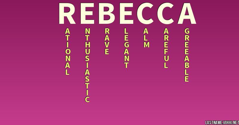 Normally people with the name Rebecca have an attractive personality. It derives from a Hebrew word meaning to tie or constrict and its meaning is binding Famous People With This Name. Family name origins meanings.