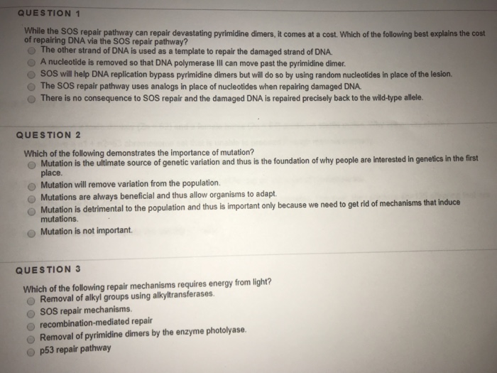 Start studying Homework 18. Which of the following best describes the SOS repair system. The SOS DNA repair genes in E.